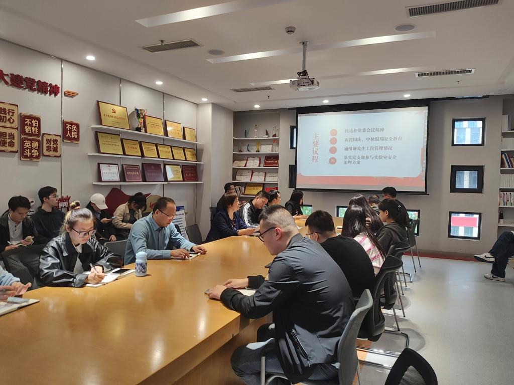 惠彦渊对国庆、中秋期间研究生安全教育工作进行了部署,通报了学院研究生流动工位管理情况,介绍了学院党委关于研究生党支部参与实验室安全治理工作方案以及相关要求,要求各党支部将党建工作与研究院实验室安全管理和工位环境建设结合起来,充分发挥党支部在学院实验室安全治理工作种的重要作用。